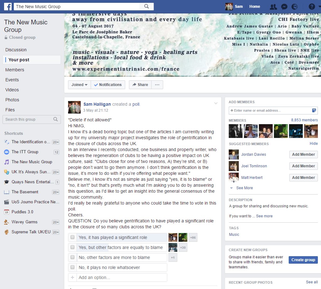 On the other side of the issue is the underground music community. In a poll I conducted in the New Music Group, 72.9% believed gentrification to have played a significant role in the closure of so many clubs across the UK, 26.3% believed it to have played a role, but that other factors were equally to blame, and just 0.08% believed it to have played no role in the closures.