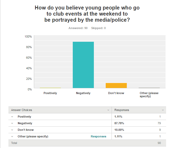In a survey which saw some 90 people take part, 87% said they believed young people who go to club events at the weekend to be portrayed in a negative manner by the media and police.
